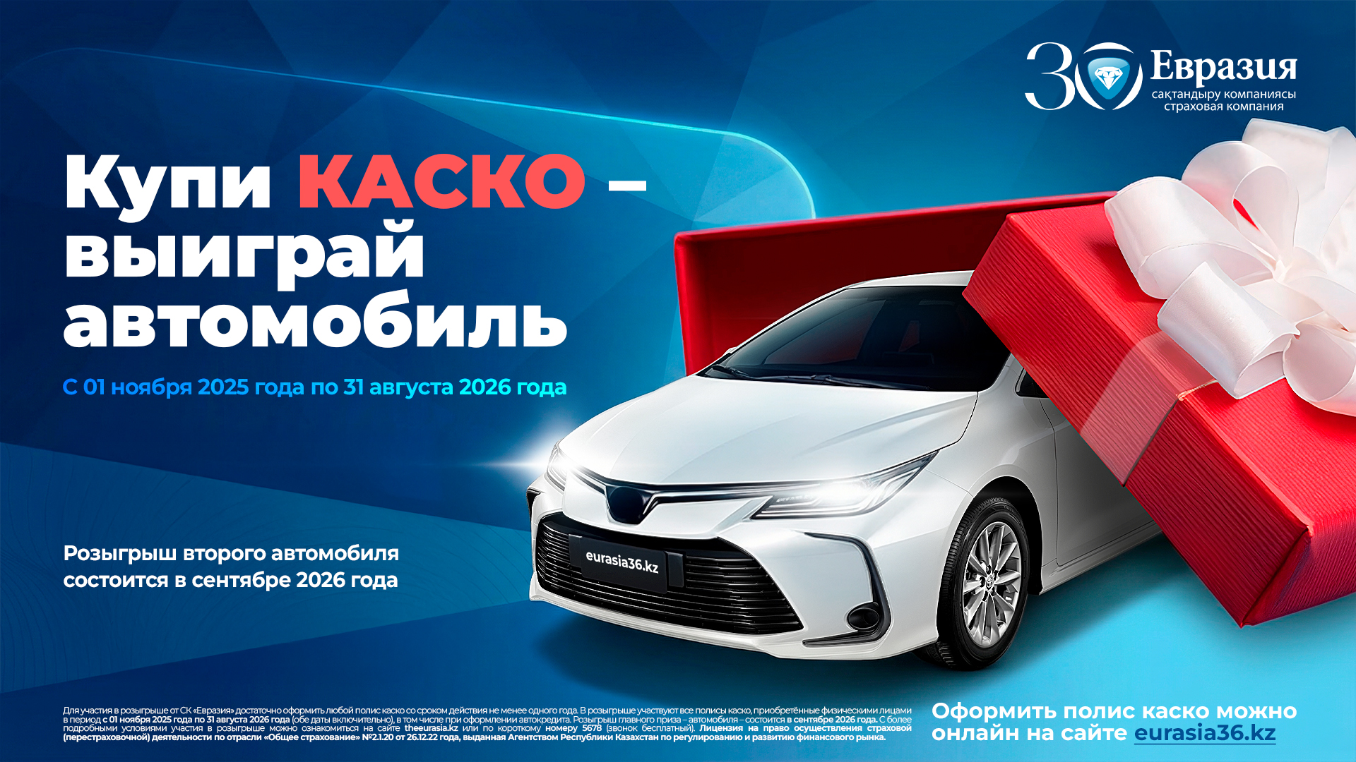 Узнать большеАО «Страховая компания «Евразия» работает с 1995 года и является лидером рынка страхования по объему страховых выплат и премий в Республике Казахстан. Уже более 20 лет мы работаем для того, чтобы Вы почувствовали себя уверенно и спокойно, находясь под нашей надежной защитой.